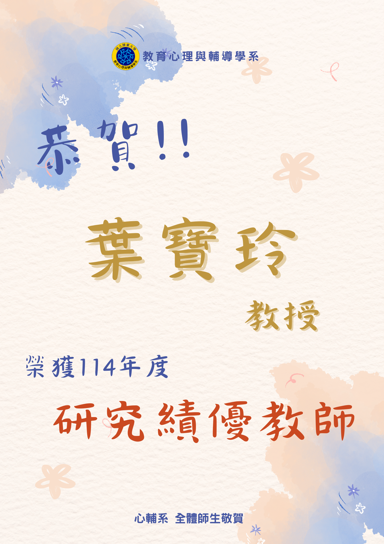 【恭賀】本系葉寶玲教授榮獲114年度研究績優教師